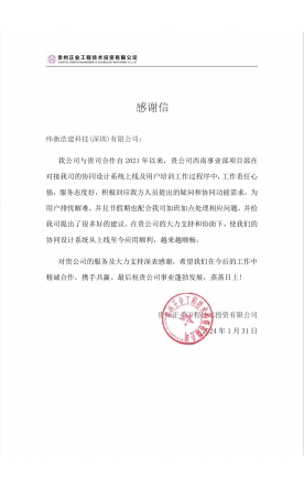 您的當前位置:首頁 - 緯衡榮譽 - 感謝信